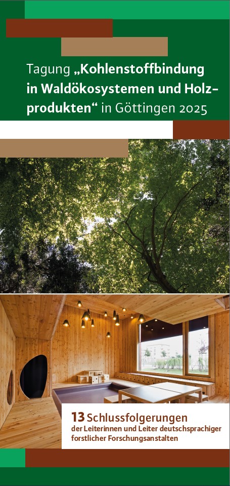 13 Schlussfolgerungen der Leiterinnen und Leiter deutschsprachiger forstlicher Forschungsanstalten, die bei der Tagung „Kohlenstoffbindung in Waldökosystemen und Holzprodukten“ 2025 in Göttingen vorgestellt wurden.
